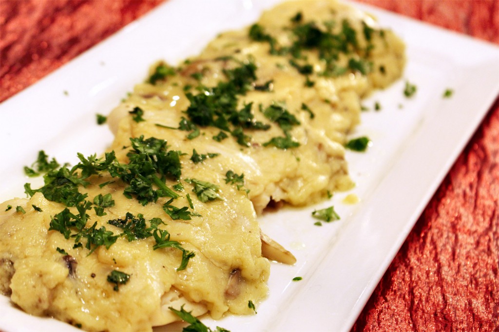 Filet of Sole in a Cream Sauce (Sole Bonne Femme/Good Wife) (Bonne Femme translates to Good Wife ‘the’ perfect dish for your new spouse)