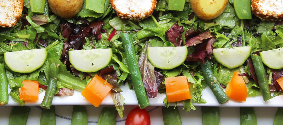 This salad is so delicious, an interesting, co-mingling of flavours and everything is oh so fresh! I was inspired by an Epicurous recipe to create my own version of freshly farmed goodness!