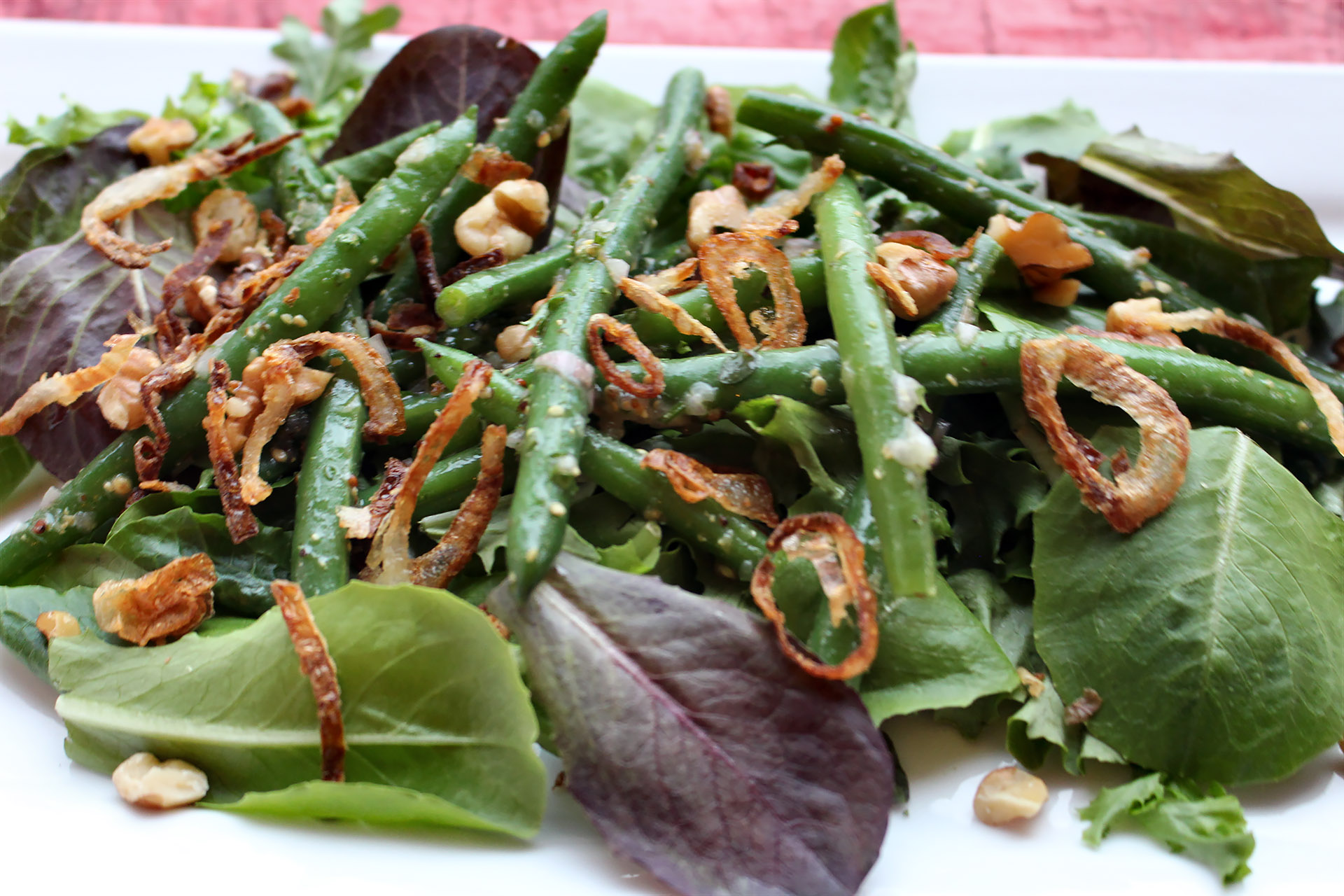 “He’s a Keeper” Warm French Green Bean Salad with Toasted Walnuts & Crispy Shallots