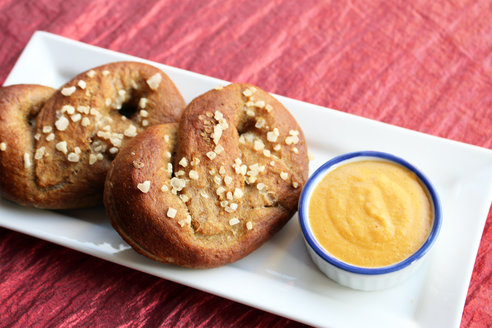Combine the beer, mustard, butter, and cayenne in a small saucepan over medium heat. Gradually whisk in the cheese. Continue cooking until smooth and all the cheese is melted -- about 5 minutes 5 Minutes. Serve warm with pretzels.