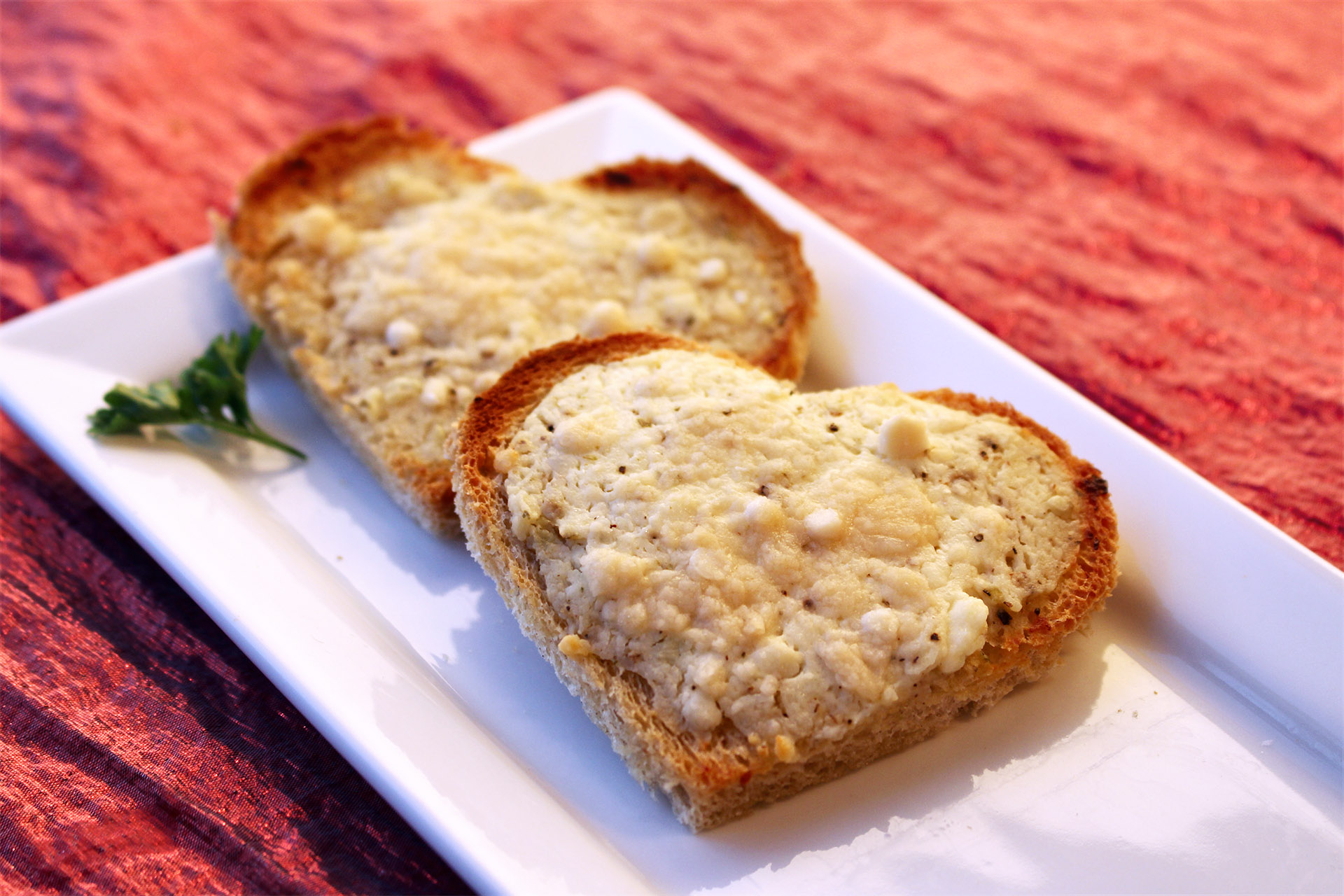 Take light rye bread slices and cut out heart shapes (I found heart-shaped cookie cutters and that ‘did the trick’). Toast for 5 minutes 5 Minutes per side at a medium oven temperature.